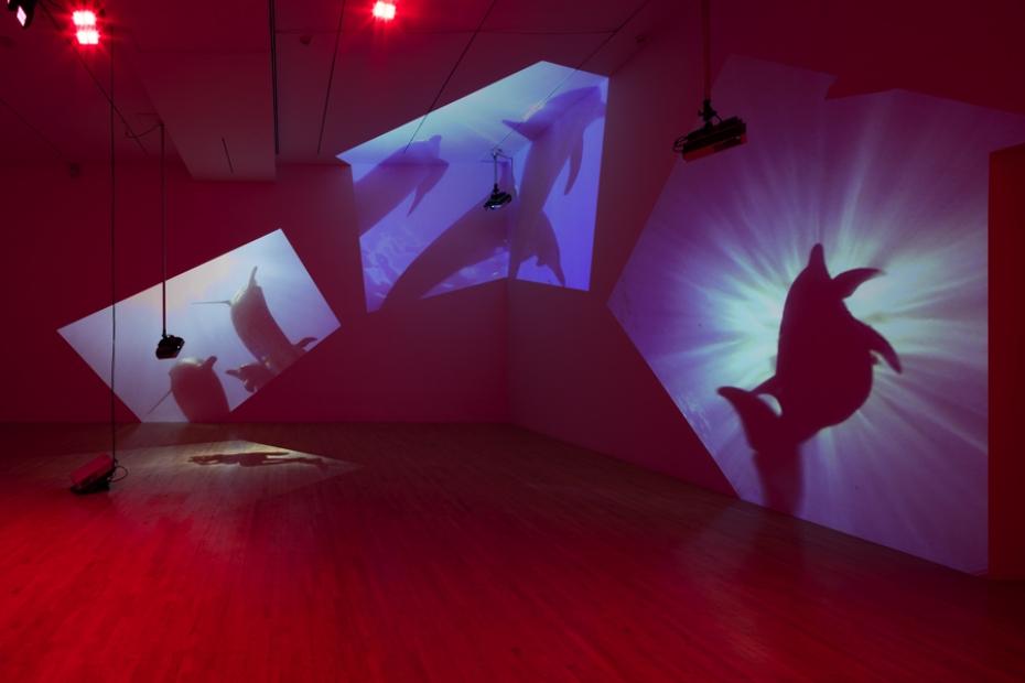 Diana Thater, Delphine, 1999. Installation view, Diana Thater: The Sympathetic Imagination, Los Angeles County Museum of Art, 2015–16. Courtesy the artist and David Zwirner, New York/London/Hong Kong. Photo by Fredrik Nilsen. © Diana Thater