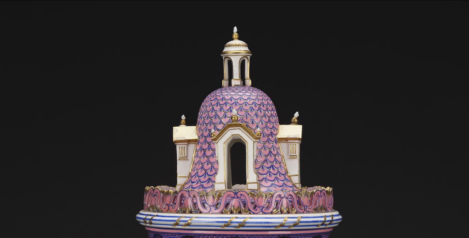 Sèvres Manufactory (French, 1740–present), Covered vase in the form of a tower, ca. 1762. Soft-paste porcelain 20 1/2 x 9 x 9 in. (52.1 x 22.9 x 22.9 cm.) The Huntington Library, Art Museum, and Botanical Gardens, San Marino, CA, The Arabella D. Huntington Memorial Art Collection.