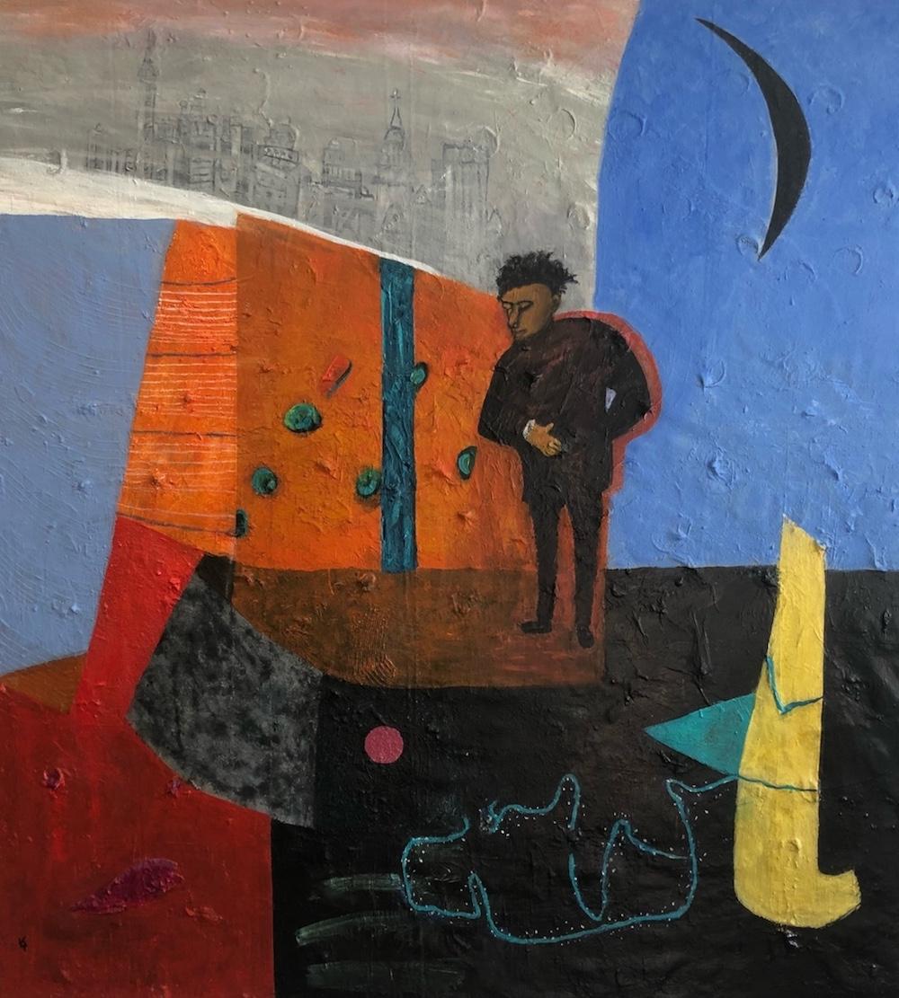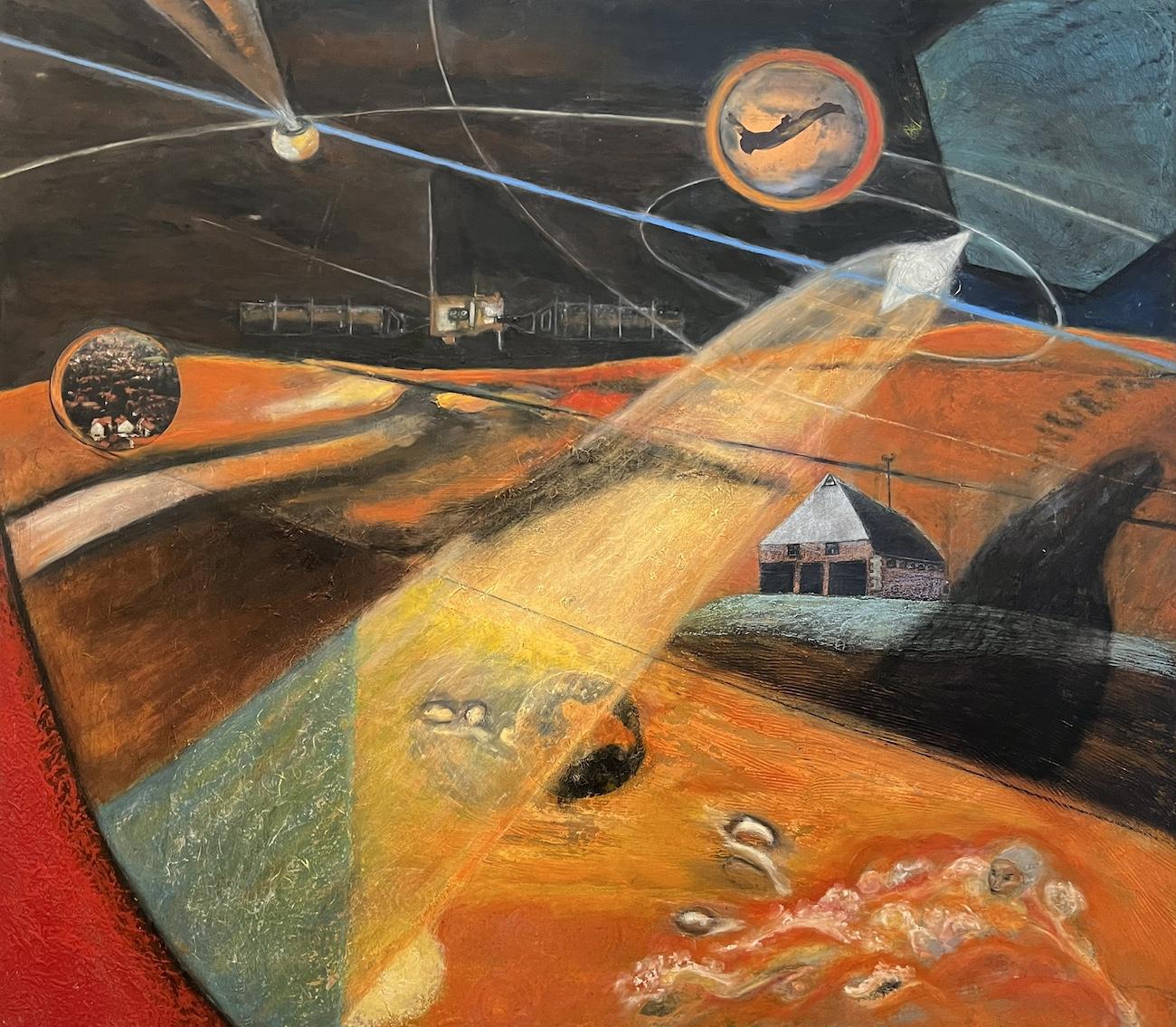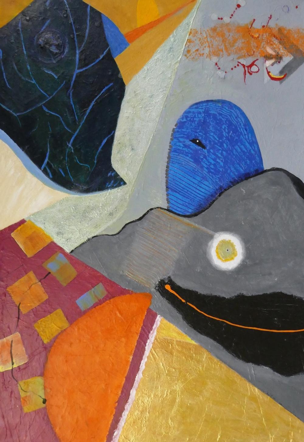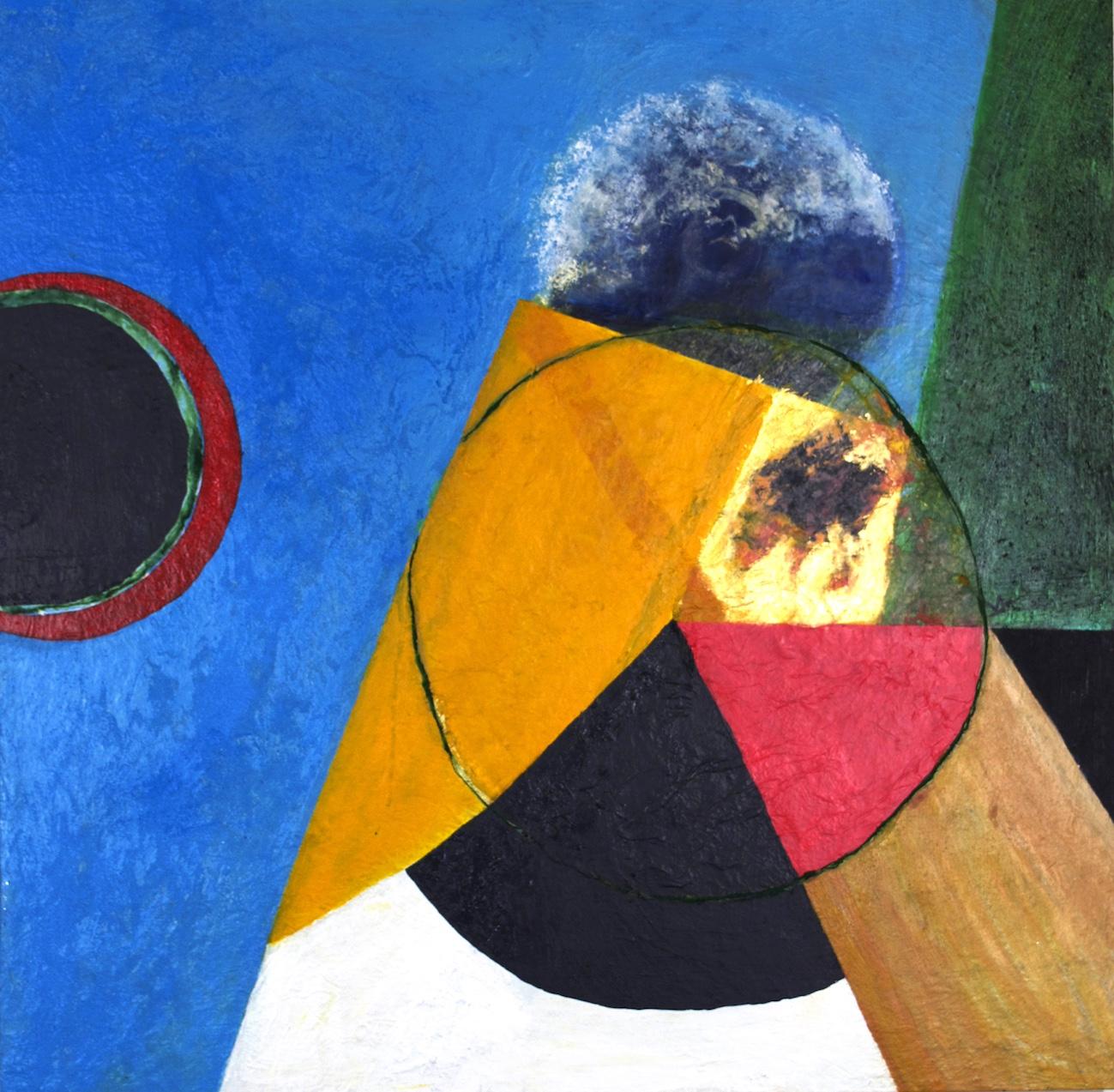 Batten explains that in recent years she has built visual worlds based on memories from her childhood, travels, long-distance swimming, space technology, seascapes, and aerial views of urban landscapes. In her mixed media paintings, she uses the brightness of light to depict the exotic atmosphere and textures of the land and water she has experienced. Batten improvises with shapes, digital images, collage, texture, rich fields of color, and space.