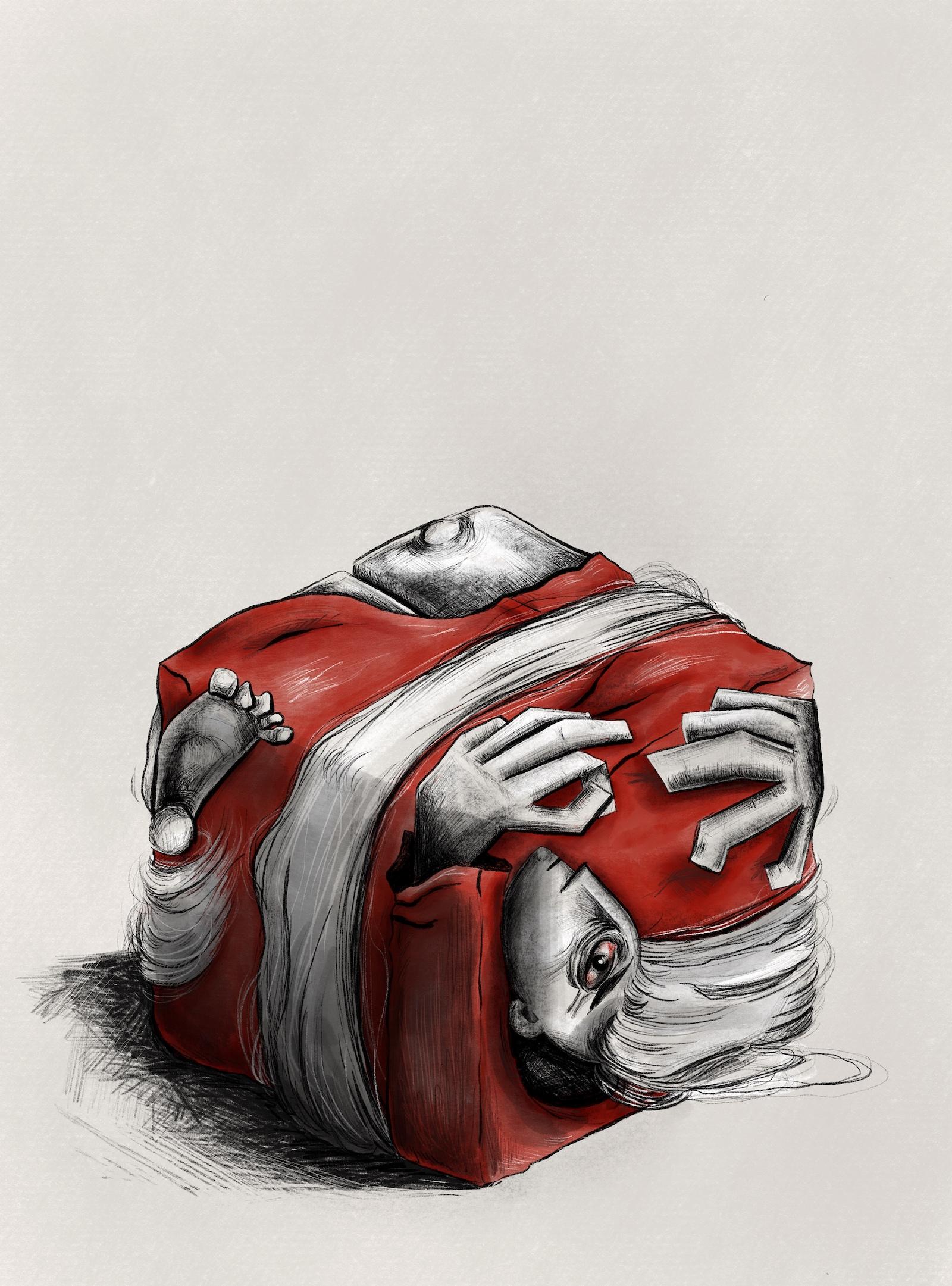 Bahrain-based artist Noora Al Hashimi’s The Female Matrix highlights the expectations and boundaries imposed on women in particular, which she argues can silence them after they are sexually harassed. “By reducing these confining boundaries into a literal enclosure, the artwork reflects the extent to which they can disfigure a person. As opposed to a real matrix (usually an environment that promotes growth), the Arab woman’s matrix ironically condenses her into an object, forbidding her from taking up space, or simply fighting back,” she says, describing her digital artwork.