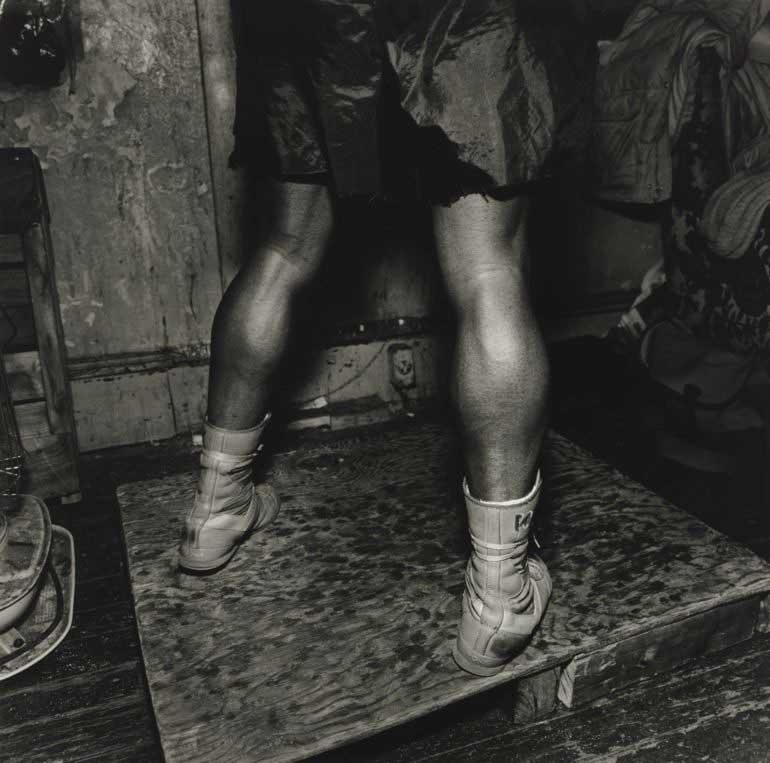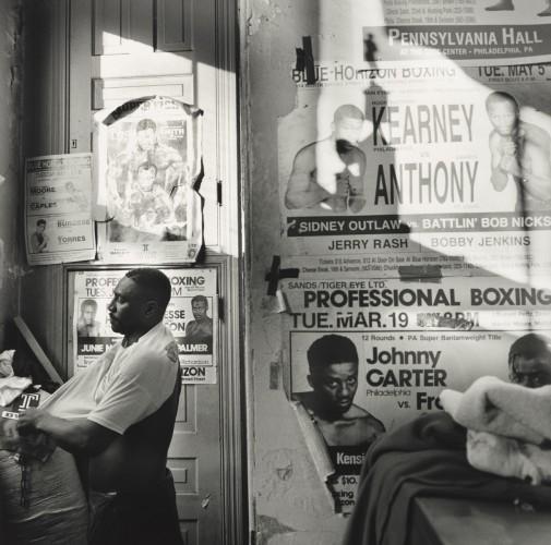 The exhibition features a bird’s-eye view of the ring at the Blue Horizon, the legendary boxing gym in Philadelphia that closed in 2010. This famous arena figures prominently in Fink’s series as it was pivotal to how he came to know and relate to the world of boxing. His photographs include close-up images of chiseled bodies: sinewy legs and arms, and muscled shoulders and backs, but also explore the psychological dimensions of the sport, from the hard work of professional training to the intensity of championship matches, to moments of unexpected tenderness and vulnerability.