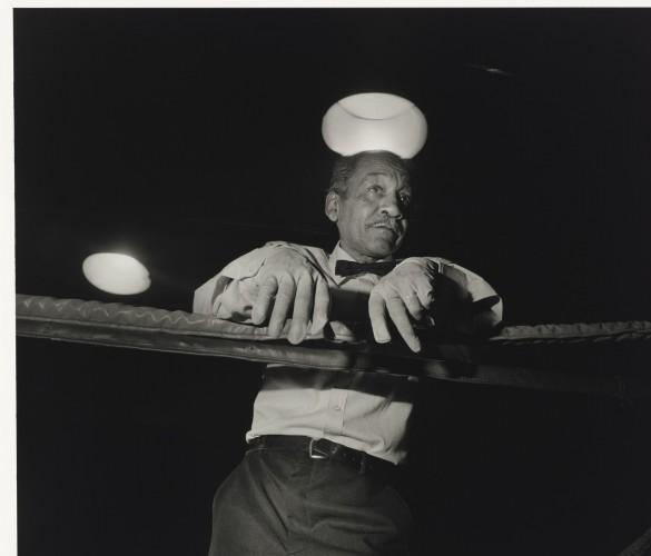 Fink’s fascination with boxing was borne out of an assignment in 1986 to photograph sportsman Jimmy Jacobs, who was also the manager of the world heavyweight champion at the time. Firing at maximum shutter speed, Fink learned how to move quickly and easily around the boxers, capturing fleeting moments of the agony, glory, shock, and satisfaction involved in amateur and professional bouts. He would continue to document boxers, gyms, and matches around the country through 2004. The works selected for display are from the artist’s intensive eighteen-year study.