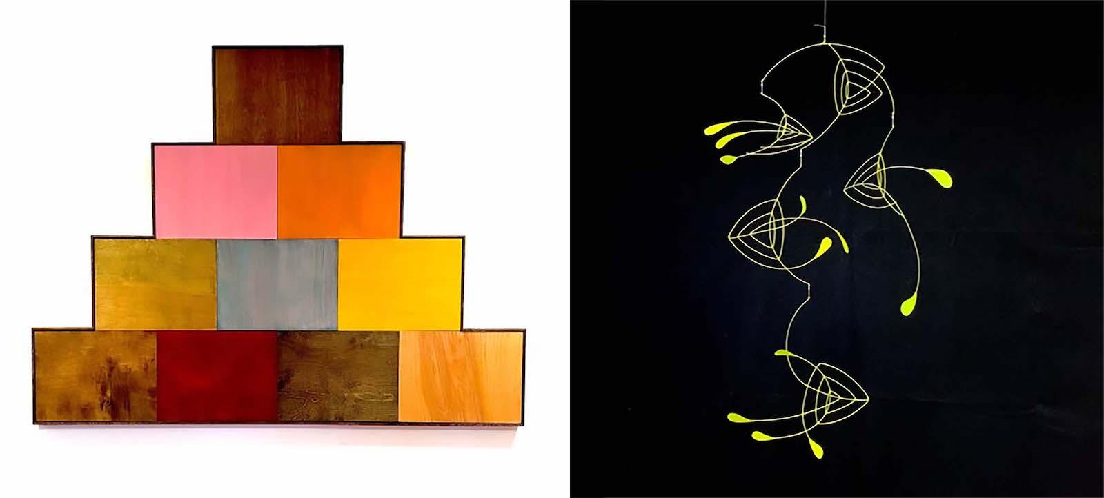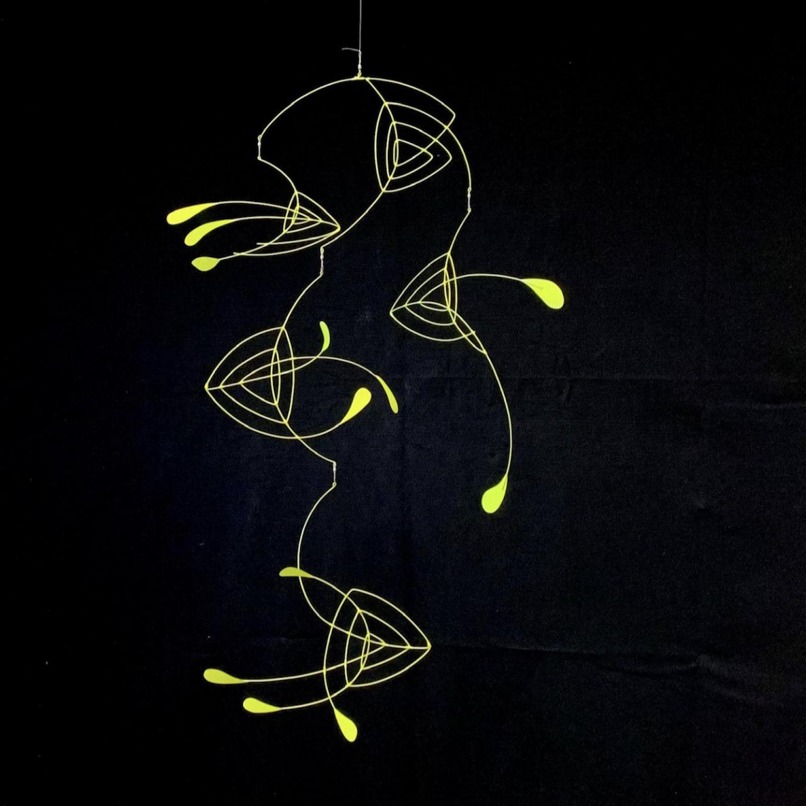 The kinetic mobiles of Jeremy Bullis are a continuation of the works of his late father David Bullis. After traveling the world as a young man, David Bullis developed a style of kinetic art that was gestural, organic and introspective. He educated his son in the engineering concepts behind his designs, and fostered in him the meticulous precision and attention to detail that is necessary to create works of such perfect and seemingly effortless balance. Today Jeremy is himself an accomplished sculptor. In “Look Up,” both David and Jeremy’s mobiles are exhibited, encapsulating a conversation on the movement of line, color, and negative space across the decades between father and son.