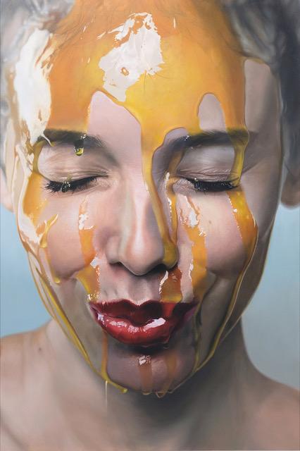 The exhibition, REFLECTION OF DREAMS consists of seven new large-scale and two new small-scale oil paintings, including new portraits of women gazing into mirrors and Dargas’ favored subject of flowing honey and chocolate over female faces.