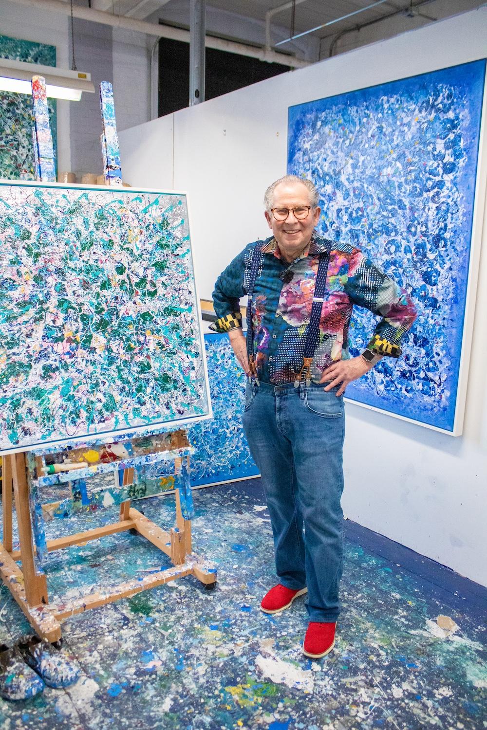 Yet, the interplay between energy and stillness, boldness and softness, reflects Schiff’s broader artistic philosophy. A lifelong musician and avid listener, Schiff brings a strong musical sensibility to his paintings. He often paints while listening to jazz or classical music, allowing rhythm and melody to guide the flow of his compositions. Each painting, he notes, is like composing a piece of music. “I work intuitively, building up layers, moving the paint around like a conductor,” he says. “There’s a rhythm to it just like in jazz, there’s improvisation, but also structure.”