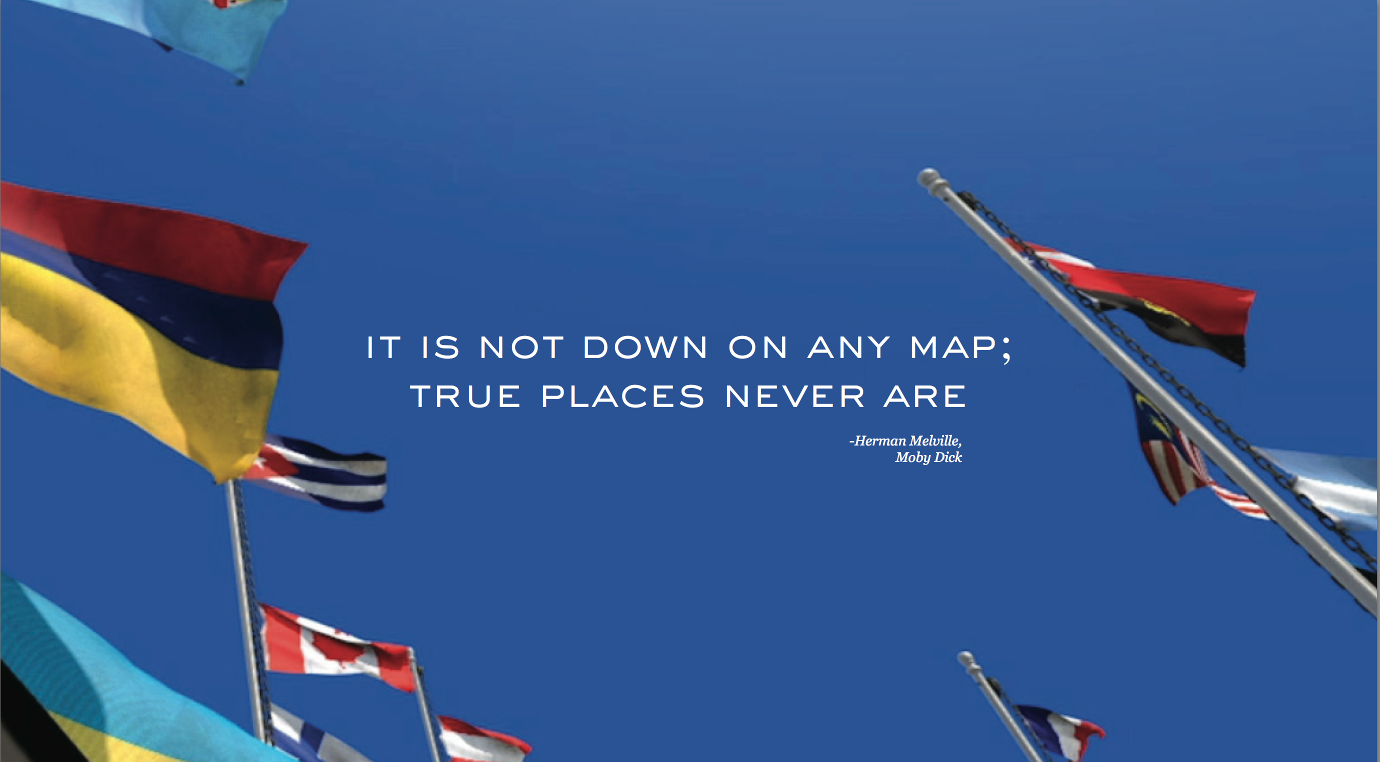 A performative installation, the flags intentionally break and manipulate the traditional rules of flag code to question the myth of globalization and equality. It is not down on any map; true places never are serves as a contradiction to these rules in which international usage forbids the display of the flag of one nation above that of another nation.