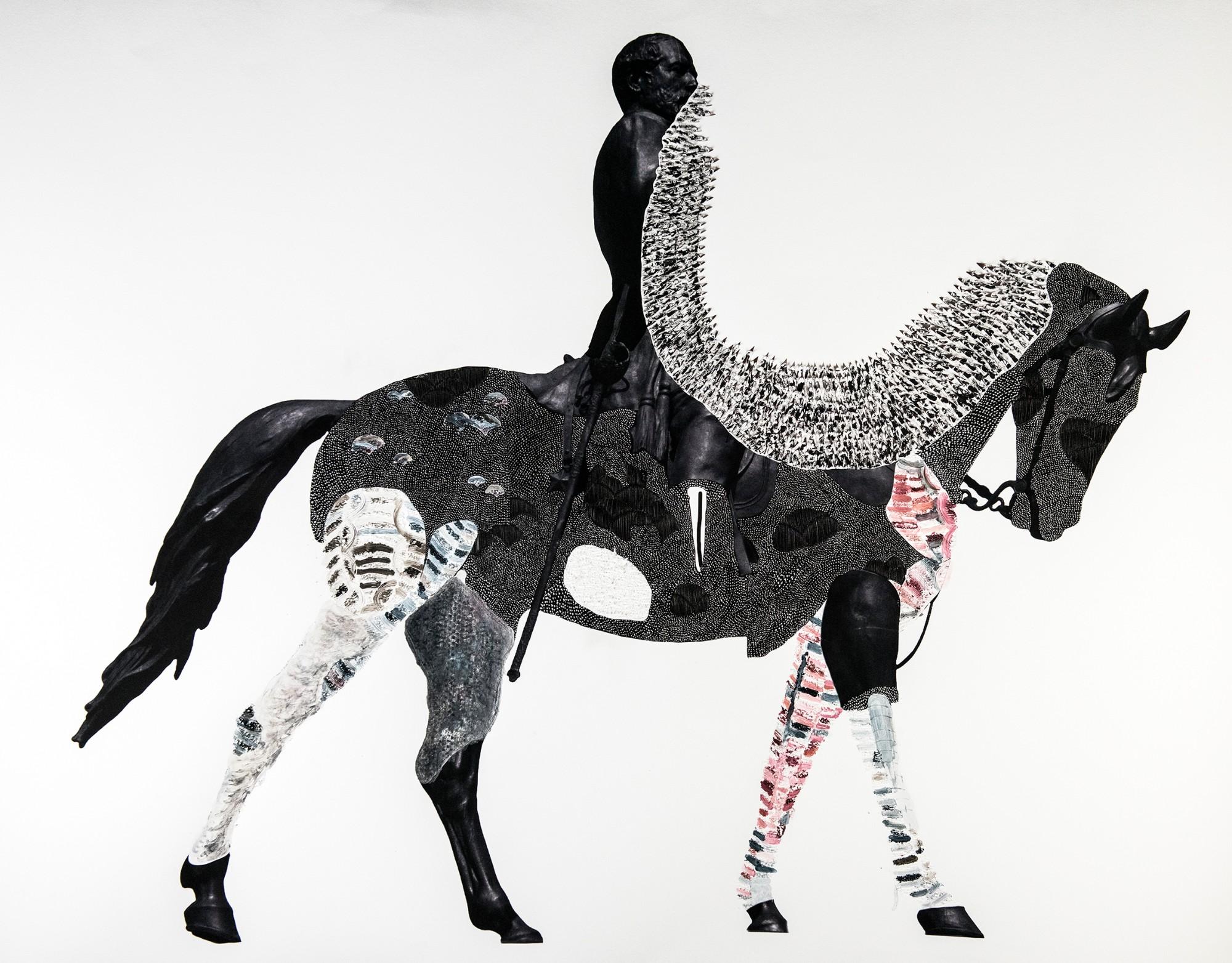 To make the new series Probing the Land, Lewis photographed American monuments, including the controversial equestrian statues of Confederate officers lining Monument Avenue in Richmond, Virginia. Lewis carves into the image of the monument, destabilizes the bronze, creating a soft anatomy within, rendering the figure of the horse and the rider active, penetrable and vulnerable. The works attempt to capture the public’s passion and dialogue about the statues.