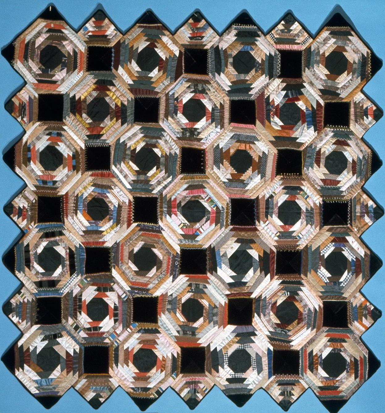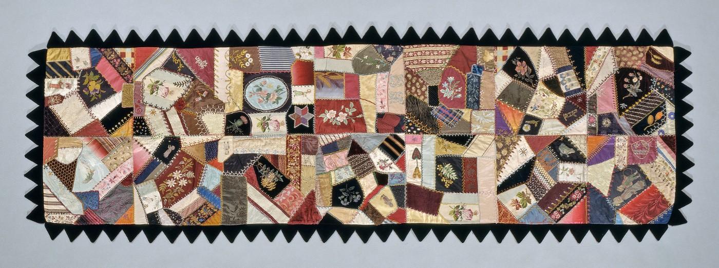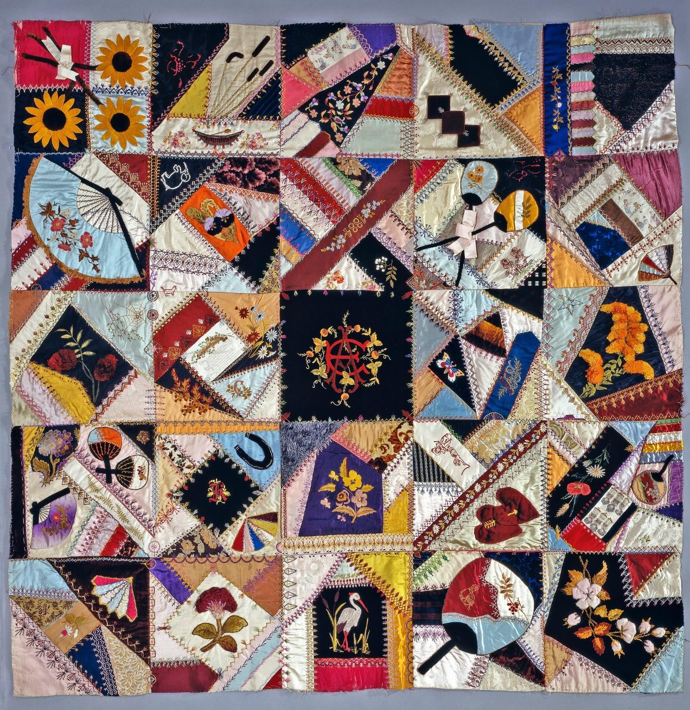 Inspired by the availability of inexpensive silks, a new fad emerged nationwide in the 1880s for ‘crazy patchwork’ quilts. Quilt makers adopted asymmetry and layered patterning, moving away from the rigid geometric piecework of traditional quilts. Silk embroidery added dimensions and texture to the quilts. These quilts were never meant to be used as bedding. Instead, they were a statement of status and style at the turn of the 20th century. They tell a little-known story of art, industry, trends and marketing in American history.