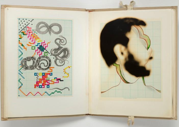 Book Number 11, Up, 1969, by Keith Smith, American, b. 1938. Artist's book with ballpoint pen, graphite, and porous point (felt tip) pen on graph paper; film-positives; and collaged and cut gelatin silver prints.