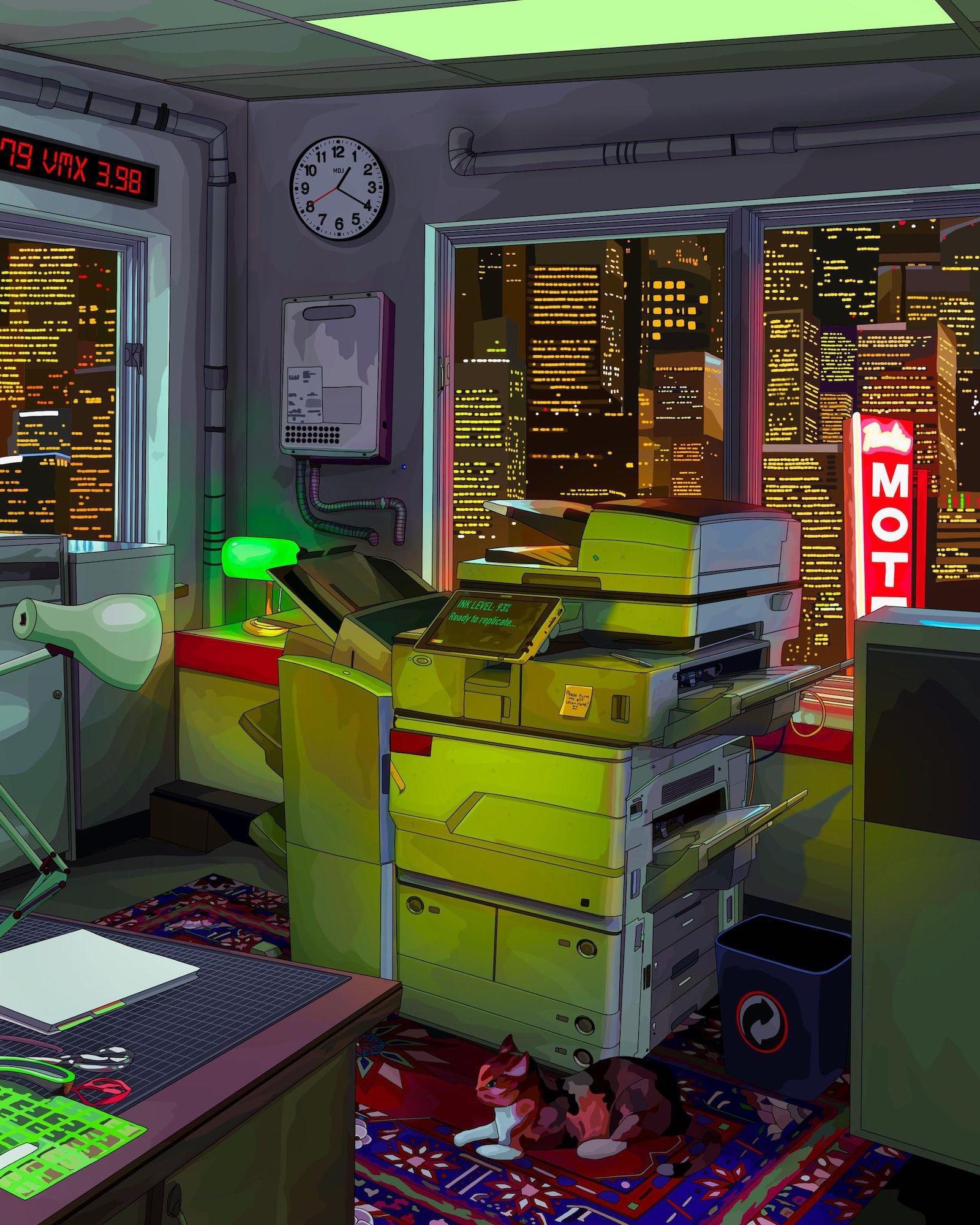REPLICATOR is an NFT experience comprising seven unique generations of artworks. Generation one, to be sold at auction, begins as a singular Genesis illustration of a photocopy machine in an office space. This first-generation NFT will produce six NFTs at the rate of one per month, with each generation being unique from those before and after it. Each subsequent generation will produce one less artwork in its lifetime until it reaches Generation seven, which will produce no new NFTs. Note, after any artwork is sold the new owner will possess all subsequent replicants or jams from said NFT.