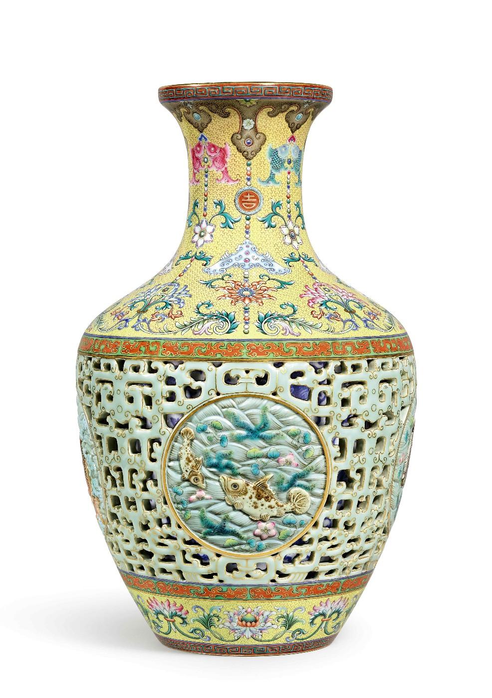 Nicolas Chow, Chairman, Sotheby’s Asia, International Head and Chairman, Chinese Works of Art, comments, “It is a great privilege for us to offer this Qing reticulated vase from the Imperial collection of the Qianlong Emperor this season. Not only is the vase unique and elaborate in design, it is also in pristine condition. To think, the distance the singularly fragile vase has traveled, and the tumultuous times it has survived, for it to be standing here in front of us today without so much as a crack or a chip, is truly extraordinary.”