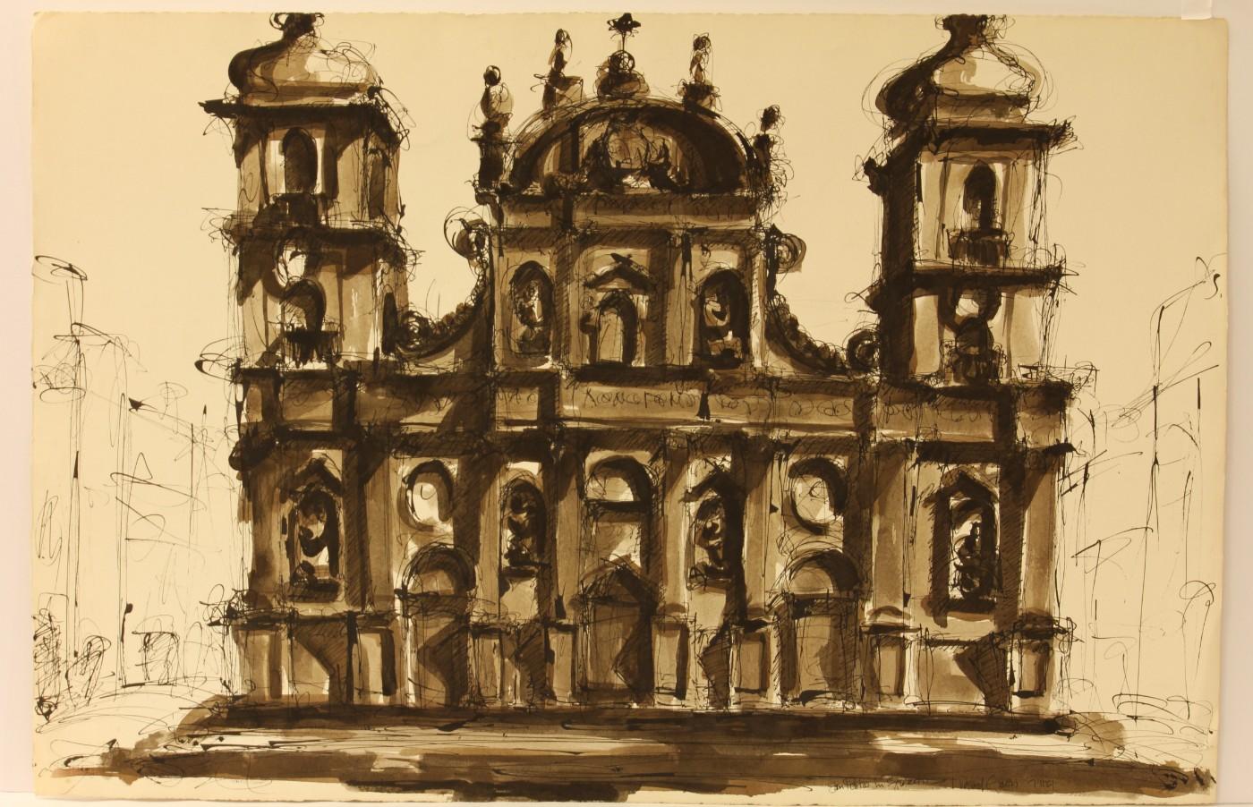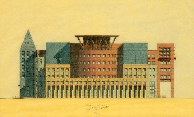 All of the drawings that will come to Princeton – which were variously executed in pen and ink, charcoal, graphite, colored pencil, watercolor and pastel – are in Graves’s own hand. There are exuberant drawings of historic monuments from his 1960s fellowship at the American Academy in Rome, pencil and ink referential drawings in sketchbooks, quick iterative design studies on yellow tracing paper, and meticulously colored building elevations. Together, the drawings in the collection form the essential visual archive of Graves’s work, revealing both his classical training and his commitment to draftsmanship – something Graves advocated for strongly in his teaching.