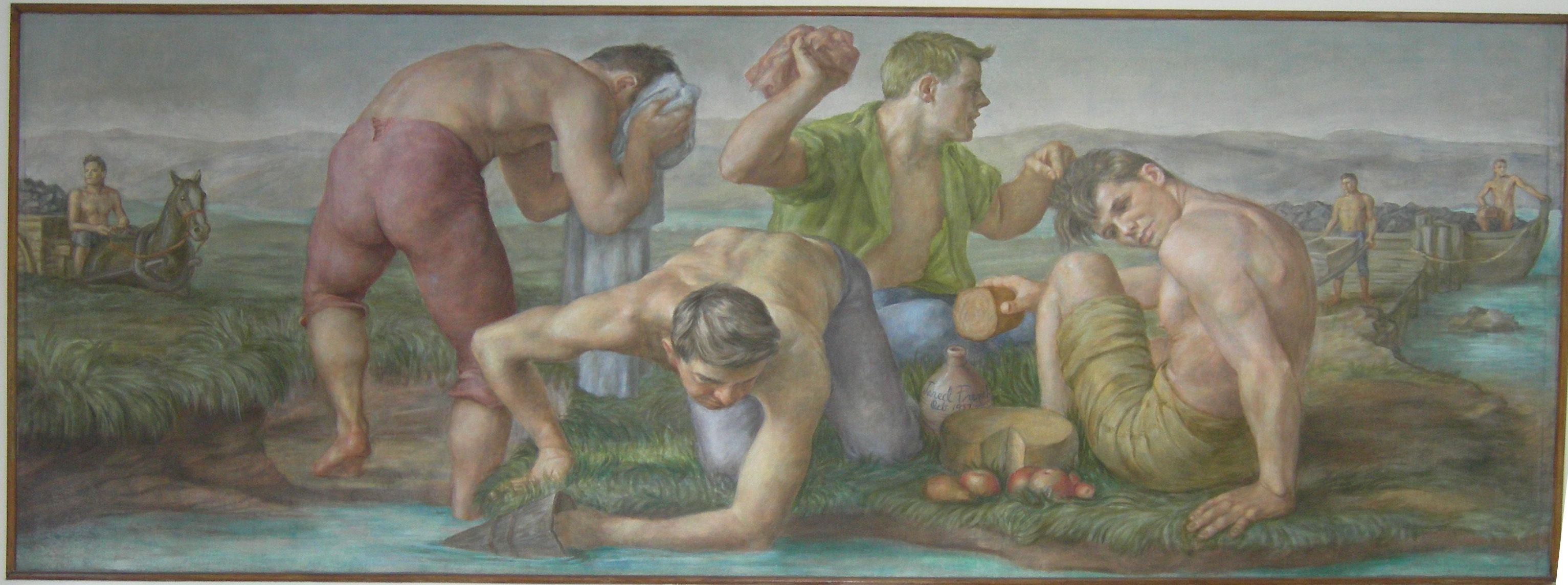 An estimated 225,000 works were commissioned during the depression era under president Franklin Delano Roosevelt’s New Deal and the Works Progress Administration Federal Art Project (WPA), a program designed to put artists to work in paying jobs and to bring art to public places like schools, libraries and post offices where people congregate. Comprehensive records were never kept but artwork done under the program keeps popping up occasionally during building construction, as recently happened at the University of Vermont. In other cases a concerted effort, like that described in the book Art For The People: The Rediscovery And Preservation Of Progressive And WPA-Era Murals In The Chicago Public Schools, 1904-1943 (2002) which brought to light approximately 450 murals in 70 public schools across the city. Artists in every state from Alabama to Washington and Puerto Rico to Hawaii benefitted from the Program.