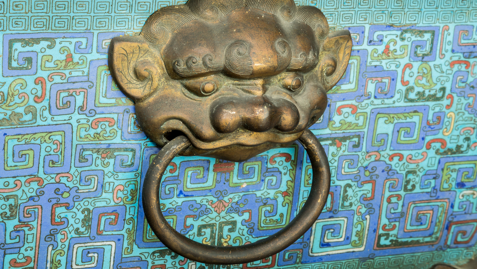 Large cloisonné and bronze censers often are associated with the vast temples and chambers of Beijing's Forbidden City, at times used for burning various forms of incense or as heat-generating braziers. This example comes from the collection of Henry C. Gibson (1830-91), a Philadelphia-area banker and financier, as well as a director and vice president of the Pennsylvania Academy of Fine Arts. It is believed this piece was acquired in Europe in the second half of the 19th century and is offered in its unrestored condition, complete with its fitted interior copper charcoal tray. The only known cloisonné censer of comparable size and form currently is displayed at the Musée Chinois de l'Impératrice in the Château de Fontainebleau outside Paris, France.