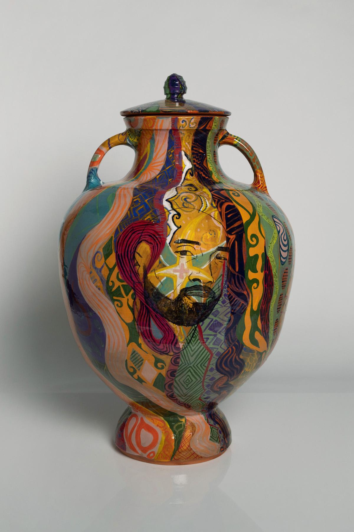Kobe Amphora, 2022, Roberto Lugo (Puerto RicanAmerican, b. 1981), glazed stoneware, Courtesy of the artist. © Roberto Lugo.