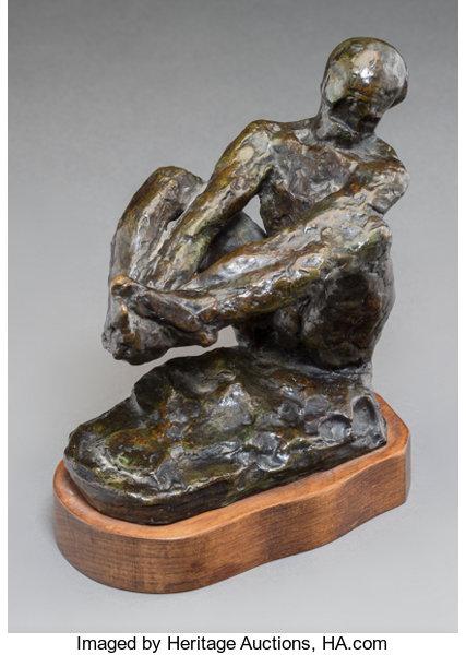 The sale also features other notable bronzes including another Rodin, Homme assis, etude B (est. $10,000-$15,000), in which Rodin gave full rein to the sensual manipulation of clay ultimately cast into bronze. In bold contrast to Rodin’s work is Gerhard Marcks’ Amazon (est. $10,000-$15,000), which emerged out of the modernist idiom of the Bauhaus with its smooth planes and minimalist surface treatment. Marcks’ figure presents the ancient women warrior as a figure whose weapons in the 20th century may be more cerebral than physical, by accentuating her stare over her physicality. In addition, Aristide Maillol’s Petit torso, from 1910 (est. $30,000-$50,000), is a sculpture that derives its motif from the antique but conceives its form as simplified geometries, which gives it a modern appearance.