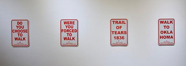 Hock E Aye Vi Edgar Heap of Birds (Cheyenne and Arapaho, b. 1954), Trail of Tears, 2005. Four aluminum panels; Edition 2/6.