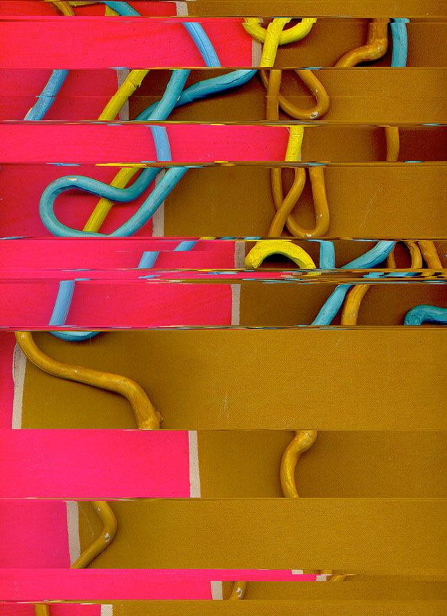 Liz Trosper (American, b. 1983), toothy zip (neon:ochre), 2019. UV inkjet print on canvas.