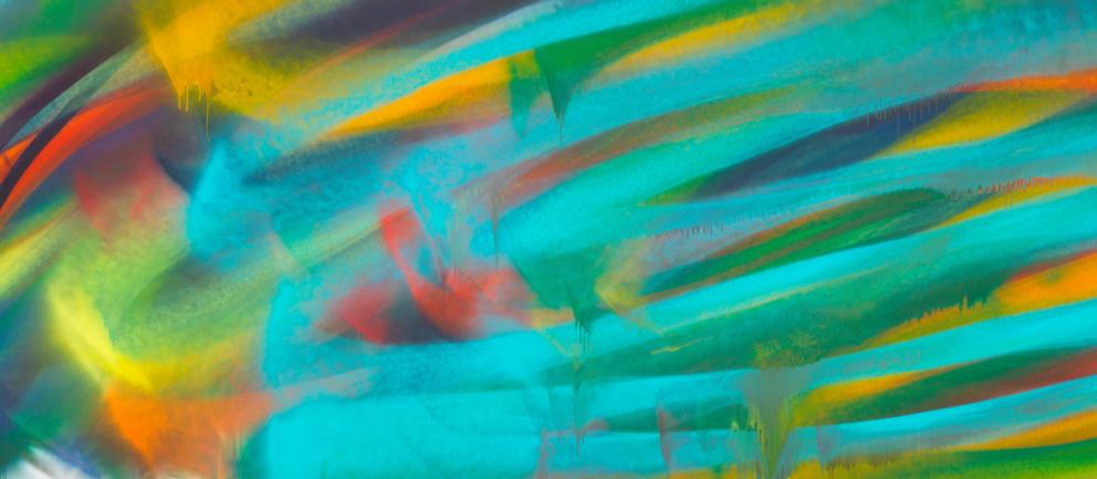 Katharina Grosse, Untitled, 2021. Acrylic on canvas. 117 3/4 x 387 in.