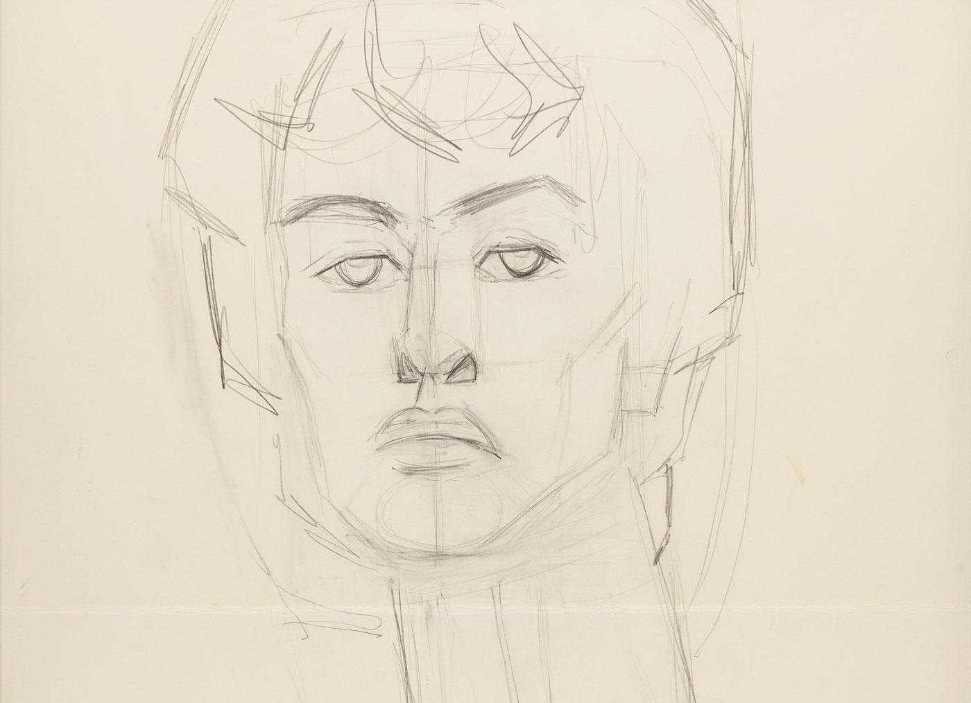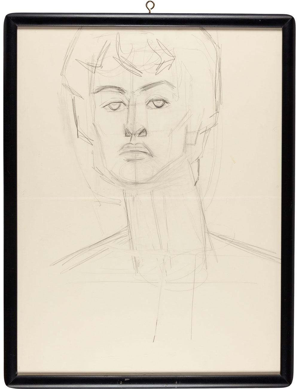 The two, large self-portraits measure 25 by 19 inches and are on a single sheet of drawing paper. They accompany Kennedy Onassis' personally owned, limited first edition copy of Fautrier L'enragé, the first publication collecting the artwork of Jean Fautrier. The copy is number 170 from an edition of 250 published in 1949.