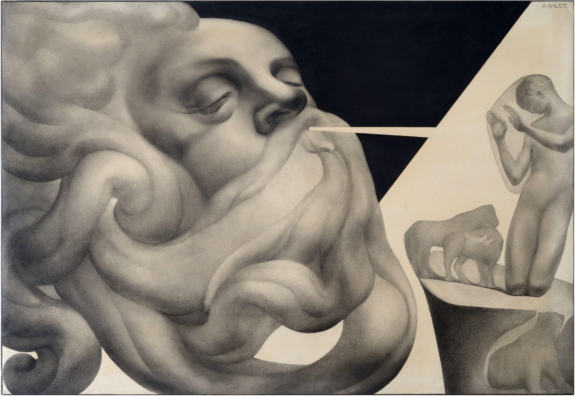Adolfo Wildt, Animantium Rex Homo, 1925. Graphite pencil and charcoal on paper mounted on canvas. Collezione Ramo, Milan.