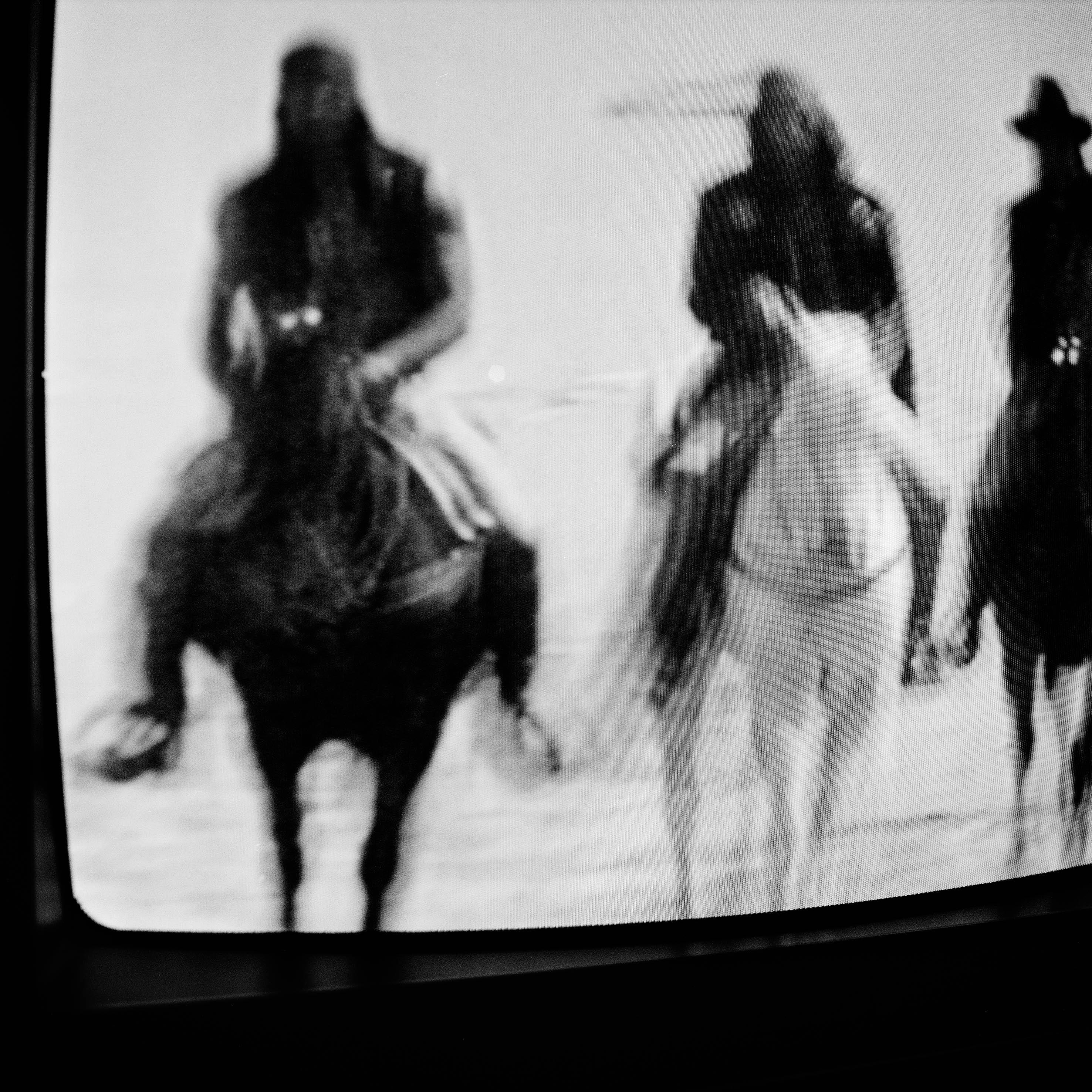 The scroll-like photograph Vlakplaas 2 June 1999: Drive-By Shooting—nearly 8 feet long—brings viewers to a quaint farm in the countryside west of Pretoria, once the headquarters of a notorious state security unit under the command of Captain Eugene de Kock, nicknamed Prime Evil. N1 Incident/End of Time (1996/1999) records the mysterious, unsolved murder of donkeys alongside the national N1 highway in the Karoo desert. The desolate scene lies along traveling grounds for the Karretjiemense, or “Donkey Cart People,” itinerant sheep shearers who are among the country’s poorest citizens. The 65-foot-long, 20-part photo work Port of Entry (2001) was made by Ractliffe alongside filmmaker Sebastian Diaz Morales as the two cruised Durban like hallucinating wanderers, while her series Real Life (2004)—life as prison and poem at once—captures in vivid color nighttime and backyard scenes from the artist’s home.