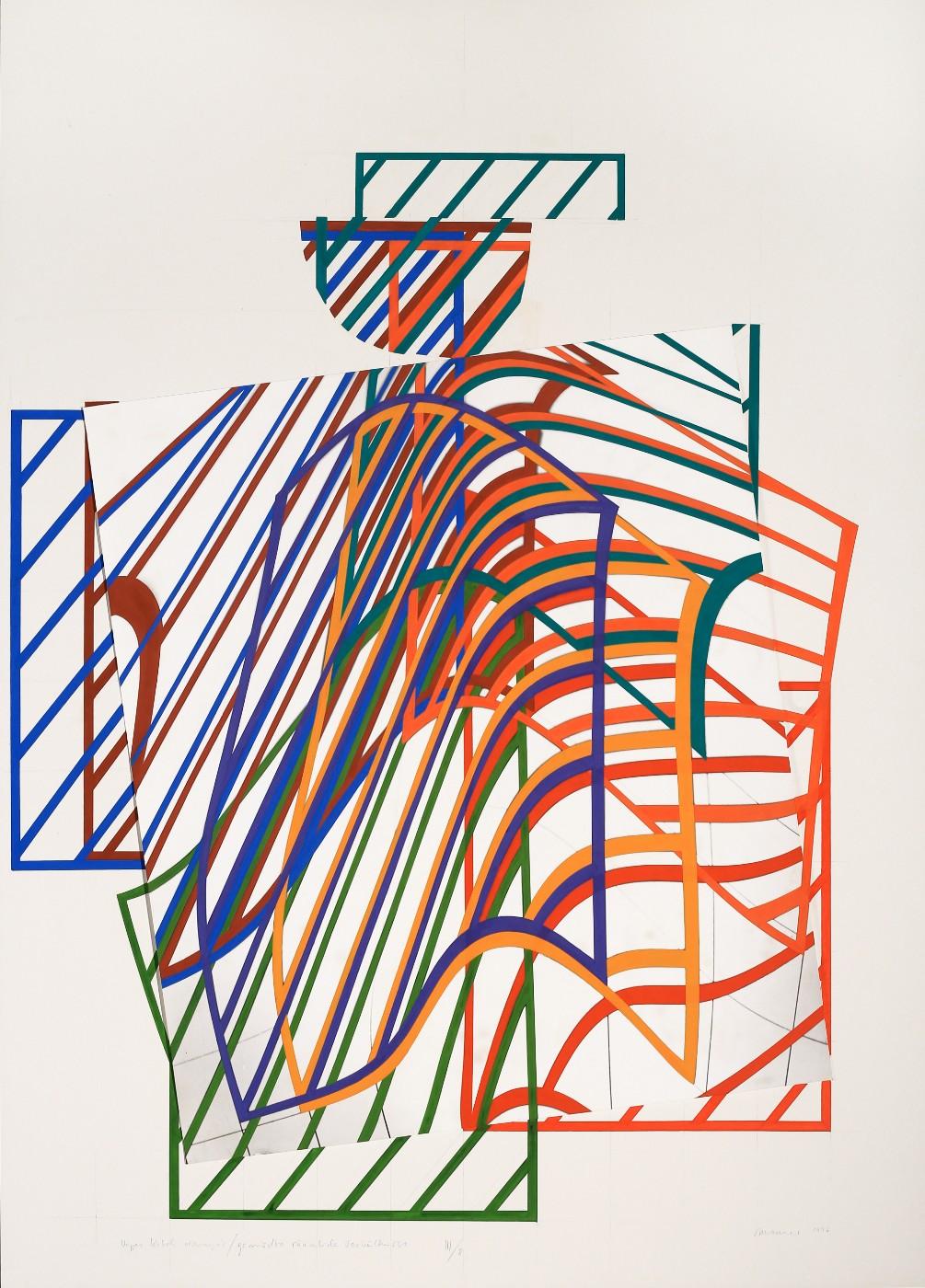 As her work became more geometric and abstract, Maurer explored system-based painting and the way in which geometric forms are affected by colour and perception. In 1983, a commission for a site-specific project at Schloss Buchberg, near Vienna, gave her the opportunity to expand her painting into three-dimensional space, marking an important shift in her work. Alongside documentation of this commission and several dynamic paintings from the 1980s and 90s, Tate Modern’s exhibition will culminate in a room of Maurer’s recent works, most of which have never been shown in the UK. These large-scale paintings are characterised by bold colour and geometric forms, including Stage II 2016, a six-metre-long work in which brightly coloured shapes create a sense of rhythmic three-dimensional movement through space.