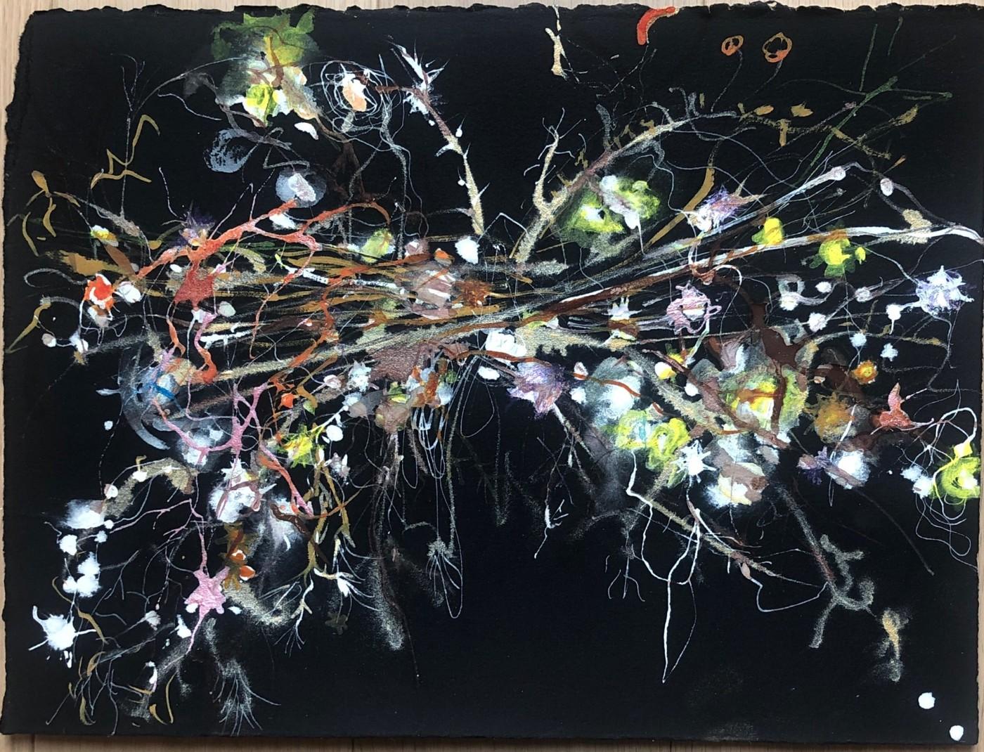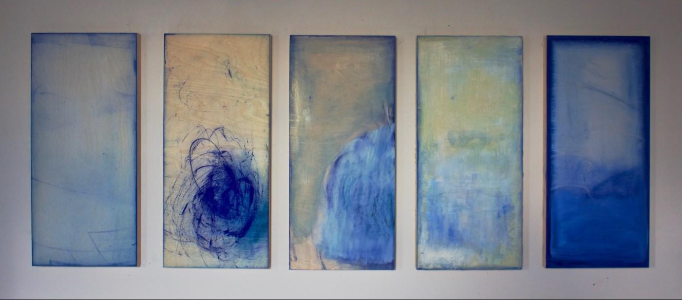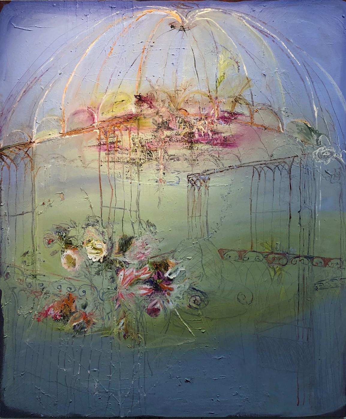Lizbeth Mitty and Dana James are both gifted painters, deftly teetering between the abstract and the representational in a range of scales, with a preference for the panoramic. Both are natural colorists although their palettes and the effects they achieve are different, as is their approach to their subjects, if not their underlying theme, centered on time, change, and the cycles of nature.
