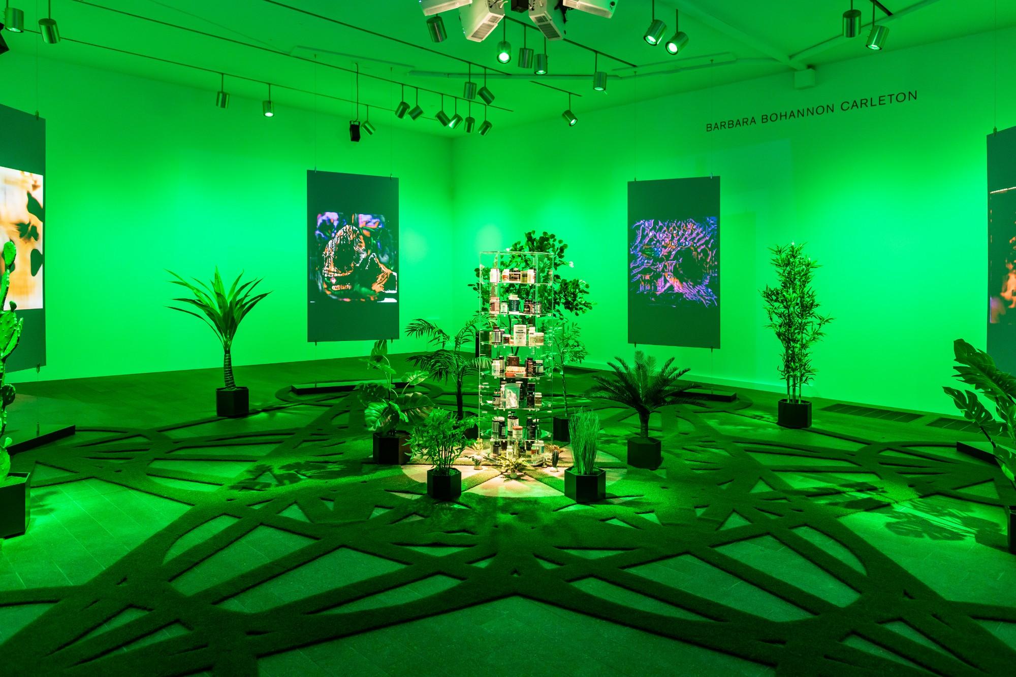 The Doors, a newly commissioned installation by Zach Blas, by contrast shines the spotlight back onto the present and on the culture and ethos of Silicon Valley -- the ground zero for the development of AI. Inspired by the ubiquity of enclosed gardens on tech campuses, he has created an artificial garden framed by a six-channel video projected on glass panes that convey a sense of algorithmic psychedelia aiming to open new “doors of perception.” While luring visitors into AI’s promises, it also asks what might become possible when such glass doors begin to crack.