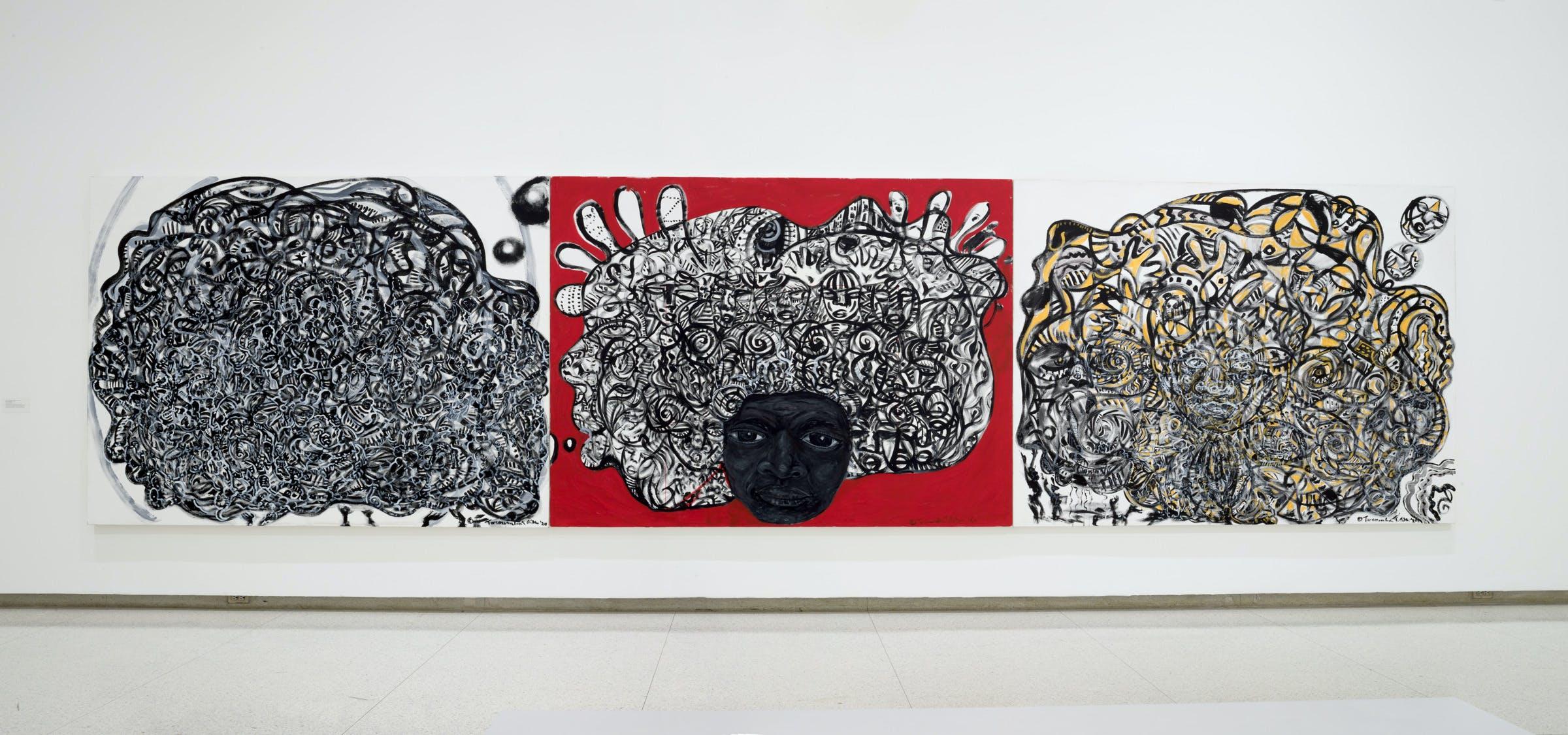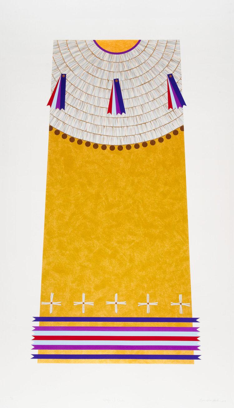 The works acquired encompass a broad range of media, including paintings, sculptures, prints, photographs, and multimedia installations. These include a grouping of new photographs by Pao Houa Her (US, b. Laos, 1982) that show the interplay between the cultures and landscapes of St. Paul and Laos; Everyday City (2006), a major sculptural installation by Tetsuya Yamada (US, b. Japan, 1968) made from 800 ceramic vessels; Takes Care of Them (Wówahokuŋkiya | Lead, Wókaǧe | Create, Nakíčižiŋ | Protect and Wačháŋtognaka | Nurture; 2019), a suite of recent prints by Dyani White Hawk (Sičangu Lakota, b. 1976) made at Minneapolis-based Highpoint Center for Printmaking and based on ceremonial Lakota dresses; Land Speed Record (2016), a room-scaled installation by Chris Larson (US, b. 1966) inspired by the history of storied Minneapolis music venue First Avenue; and several important early works by Siah Armajani (US, b. Iran, 1939–2020), who passed away this year, and whose retrospective Siah Armajani: Follow This Line was co-organized and presented by the Walker in 2018.