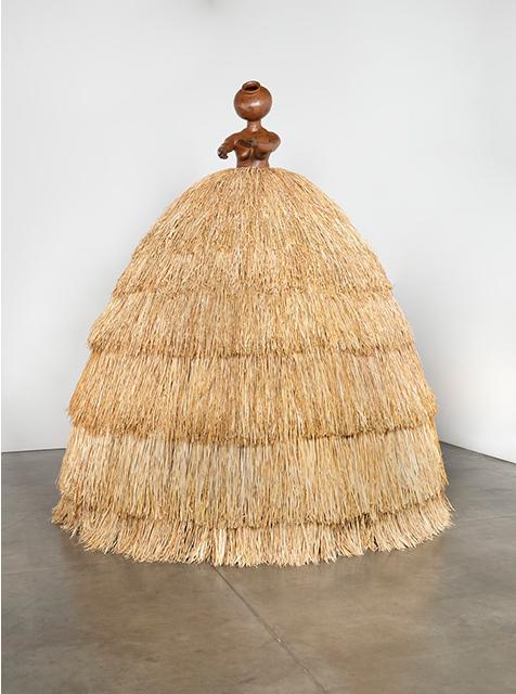 Simone Leigh, Cupboard VIII, 2018. Stoneware, steel, raffia, and Albany slip, 125 x 120 x 120 in. (317.5 x 304.8 x 304.8 cm).