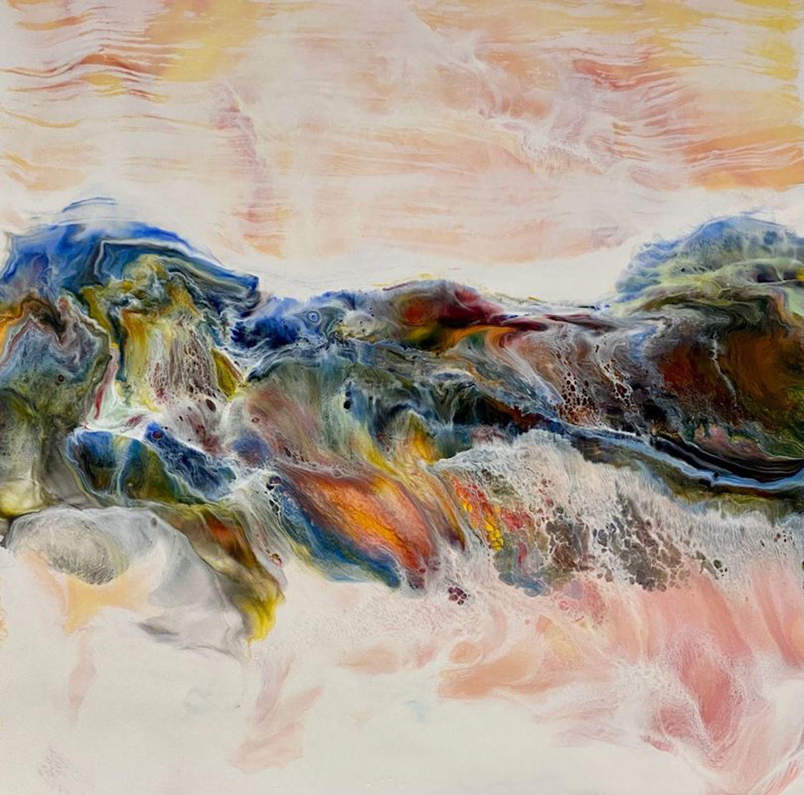 Responding in chroma lifted from these shifting visions, the crisp minimalist color fields of Whitcraft’s work continues the conversation, raising the discussion to a sphere of colors capturing the essence of each pair of Schiffman’s encaustic works. While the shifting reality of landmarks in Icelandic geography continues in tandem with the pandemic, Schiffman imports a range of foreign life forms and elements into the landscapes–challenging the sense of reality of a known space. Whitcraft responds to these encaustic forays with digitally created elegant color fields printed on Hahnemuhle Museum Etching paper, a perfect counterpoint to Schiffman’s intense multi-layered encaustic works on wood. This is a visual journey with two artists working in vastly different styles across the same landscape.