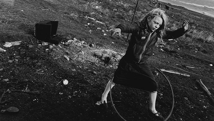 Christopher Killip, Helen and her Hula-hoop, Seacoal Camp, Lynemouth, Northumberland (detail), 1984, gelatin silver print, Yale Center for British Art, Gift of The Hyman Collection, London (Claire and James Hyman), copryright Christopher Killip, 2018.