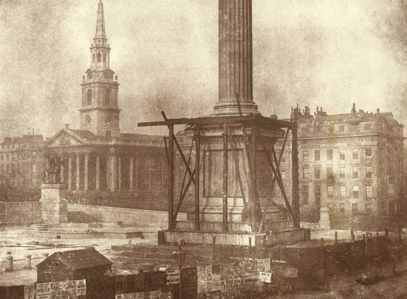 William Henry Fox Talbot, Nelson’s Column Under Construction, Trafalgar Square, April 1844, salted paper print from paper negative