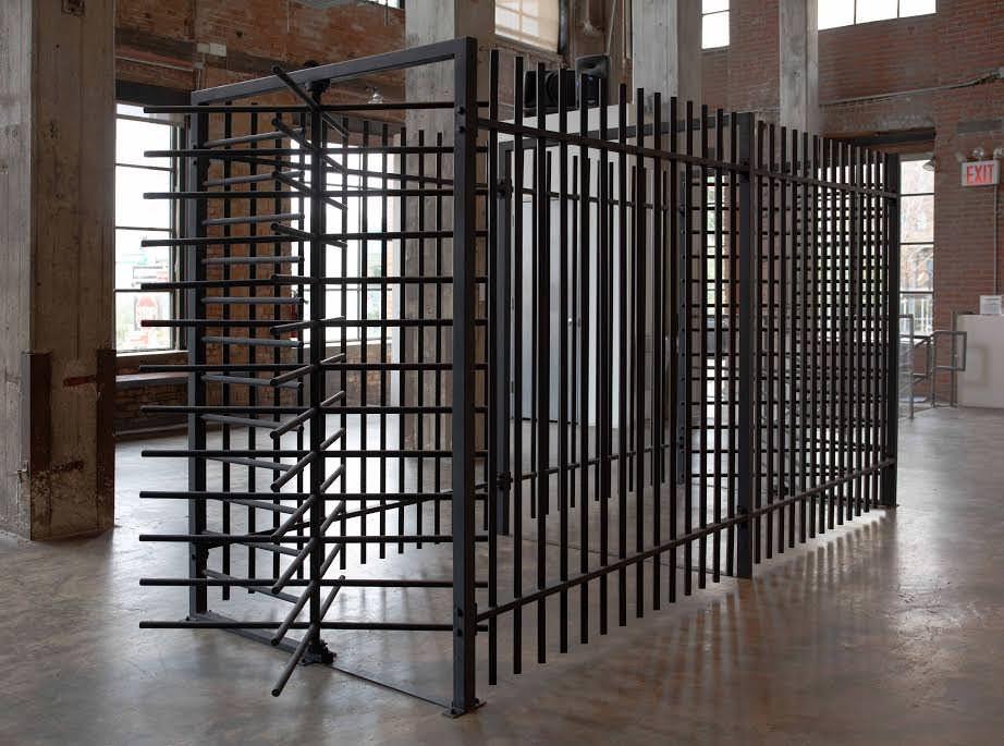 With a firm interest in border architecture and the ever-tightening security system’s of our contemporary society, Hacmon taps into timely but also historic issues of movement and the architecture and controls used to police it. Considering the act of displacement and relocation – rebuilding a section of an Israeli checkpoint – Hacmon calls attention to man-made perimeters, social emergencies, and the inhumanity of these crossings. The physical crossing within the gallery space encourages the viewer to ask that we work to dismantle borders and consider new strategies of coexistence, empathy, and collaboration.