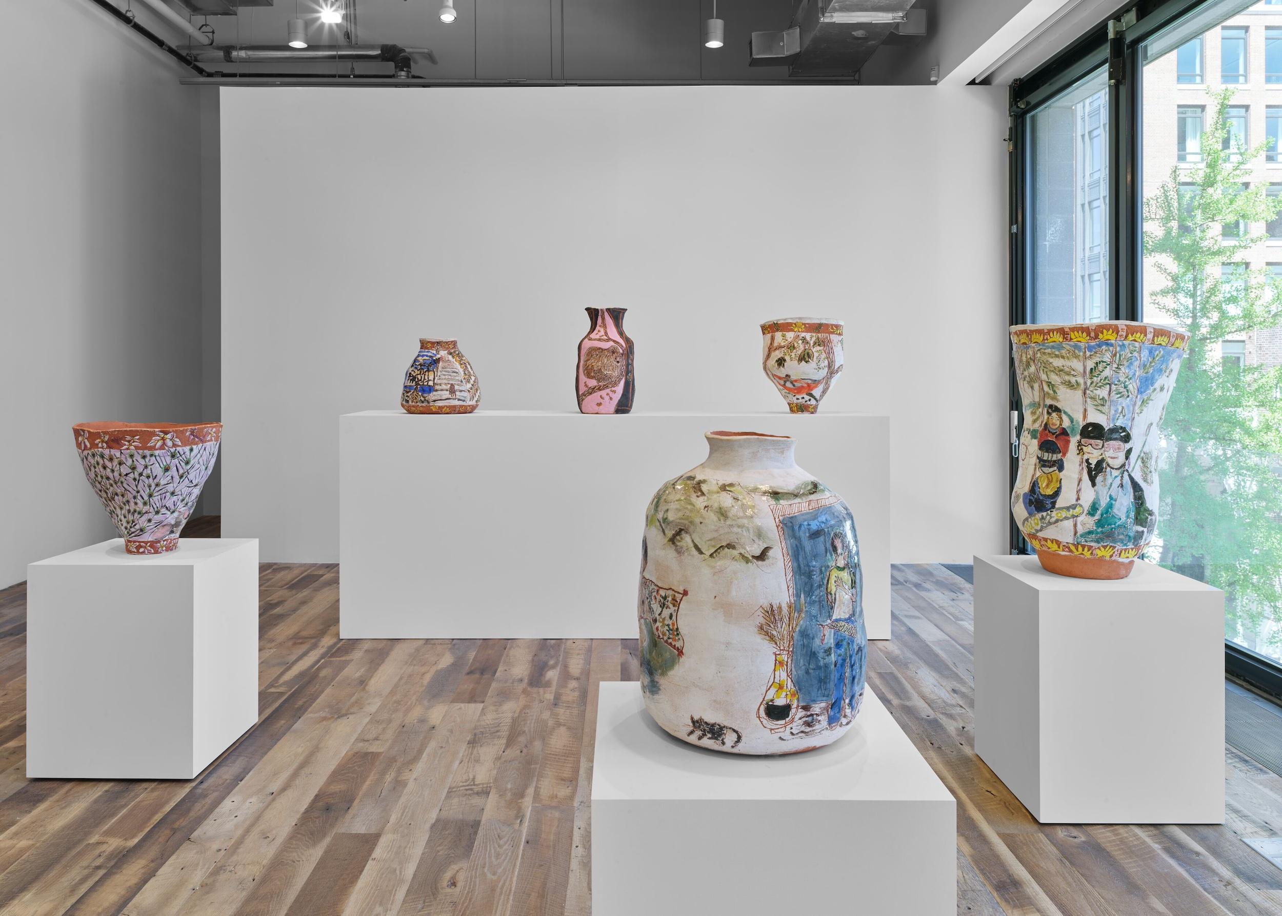 Gallery Twenty years ago, Los Angeles-based high school painting teacher Jennifer Rochlin accepted a $10,000 grant to teach ceramics, despite one minor setback: she had never touched clay. Yet, this summer, Rochlin adorns Hauser & Wirth’s 22nd Street location with memory-laden terracotta vessels, each a heap of unabashedly spirited and a testament to her own bohemian actualization.