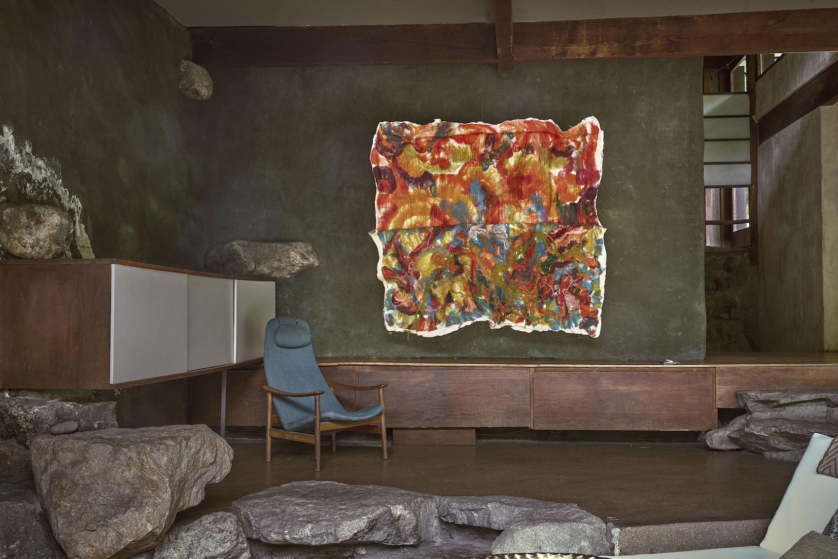 Following Wright’s innovative ideas of incorporating pressed hemlock needles, encased butterflies, and other elements of nature into the striking interiors of his home— perched high above a quarry— the show features work by artists who share a deep connection to nature.